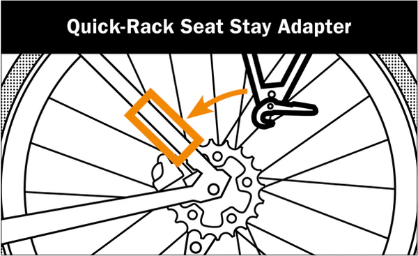 Si no hay una rosca adecuada para el portaequipajes o el eje pasante, puede utilizar el adaptador opcional de soporte de sillín para montar el Quick-Rack en su bicicleta. (DISPONIBLE AQUÍ)